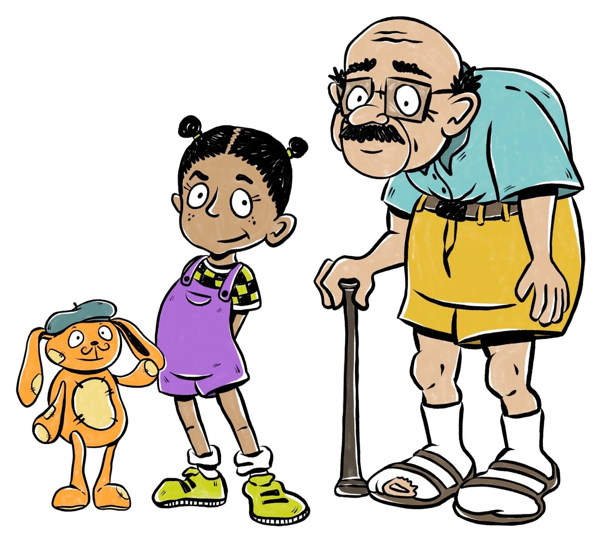 Meet the main characters from the book “Pickles for Pop-Pop”!
